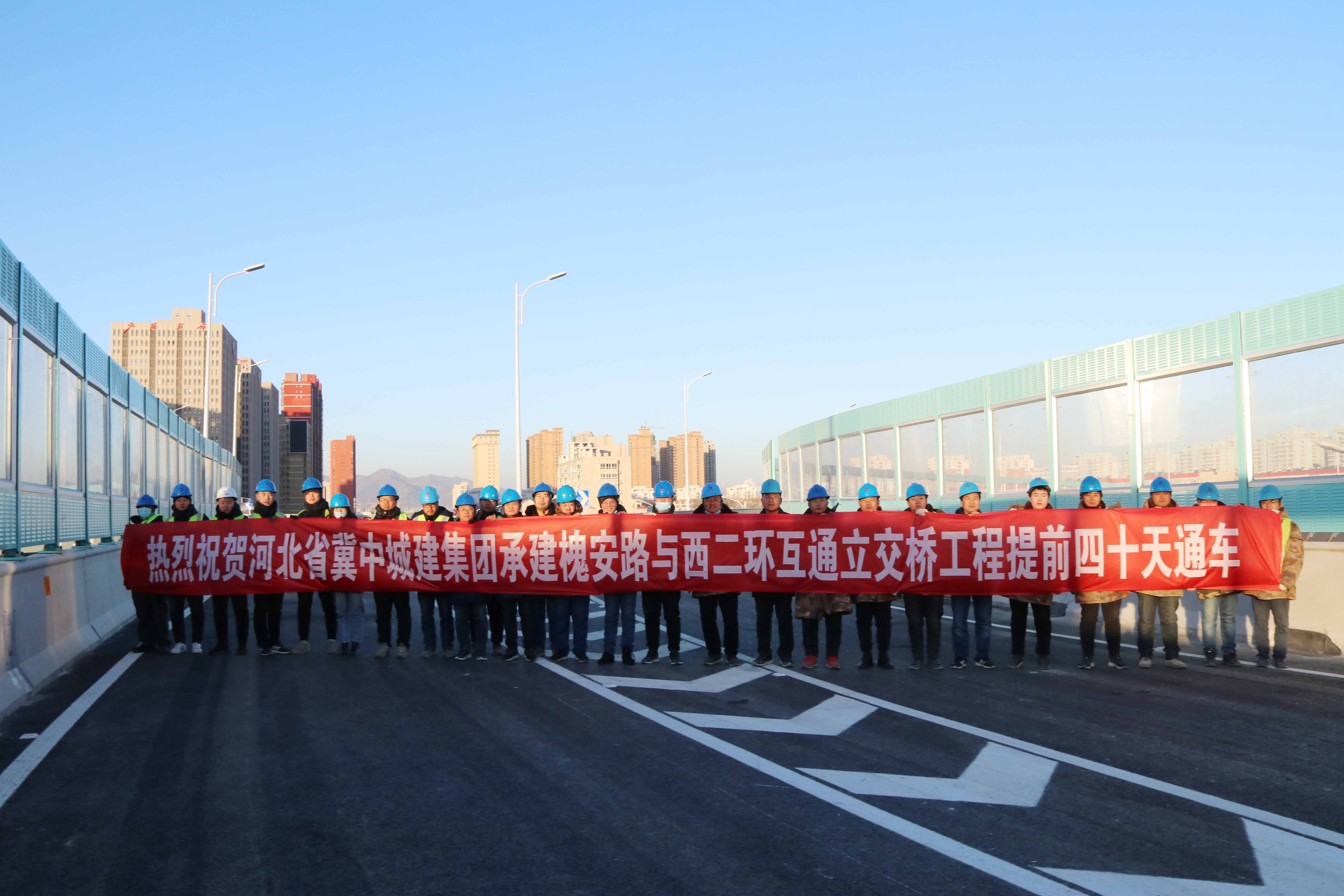 12月31日,集团公司承建的槐安路西二环互通立交桥一期工程经过项目部全体员工134天日夜奋战,圆满完成施工任务,将于2021年元旦开通试运行 ,比原计划提前整整40天。槐安路西二环互通立交一期工程竣工通车将有效缓解交通压力 ,提高居民出行便捷性。