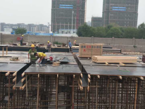 目前 ,该项目部主要进行市政商务中心1#楼地下车库建设,包括车库支架搭设,以及墙体、梁、柱 、顶板模板的支设。由于所建车库的高度较高且梁体结构尺寸较多 ,要经过精密的计算才能设计出支架方案,以保证工程质量安全 。预计本周完成西侧顶板、梁、柱模板的安装,以及后浇带东侧 、西侧支架的搭设。
